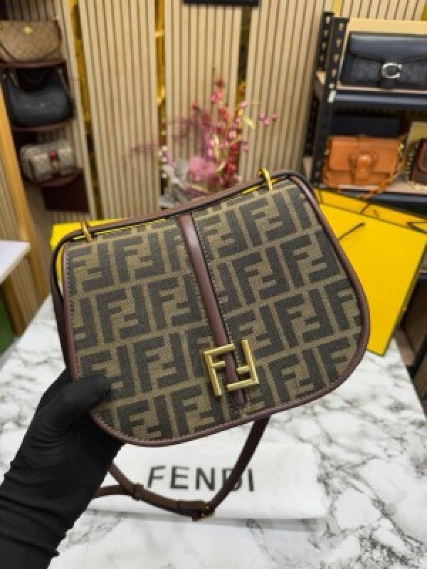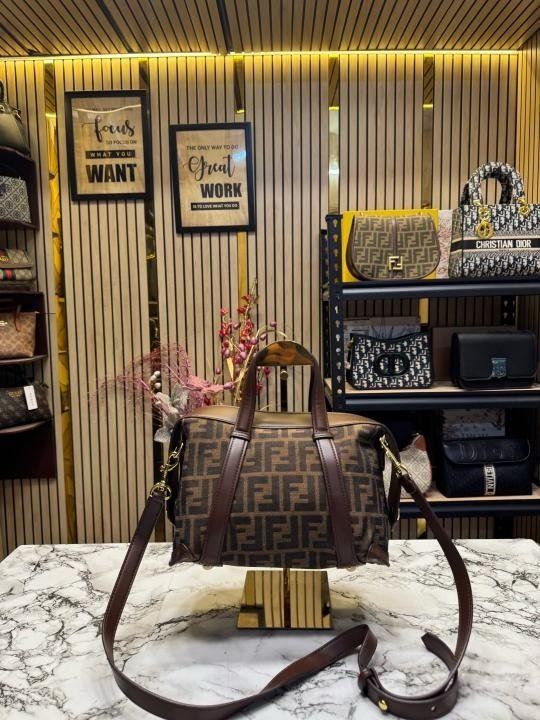 FEND I COMON FF LOGO PLAQUE HANDBAG WITH OG BOX AND DUST BAG INCLUDING CARRY BAG PREMIUM QUALITY (COFFEE)(MT)