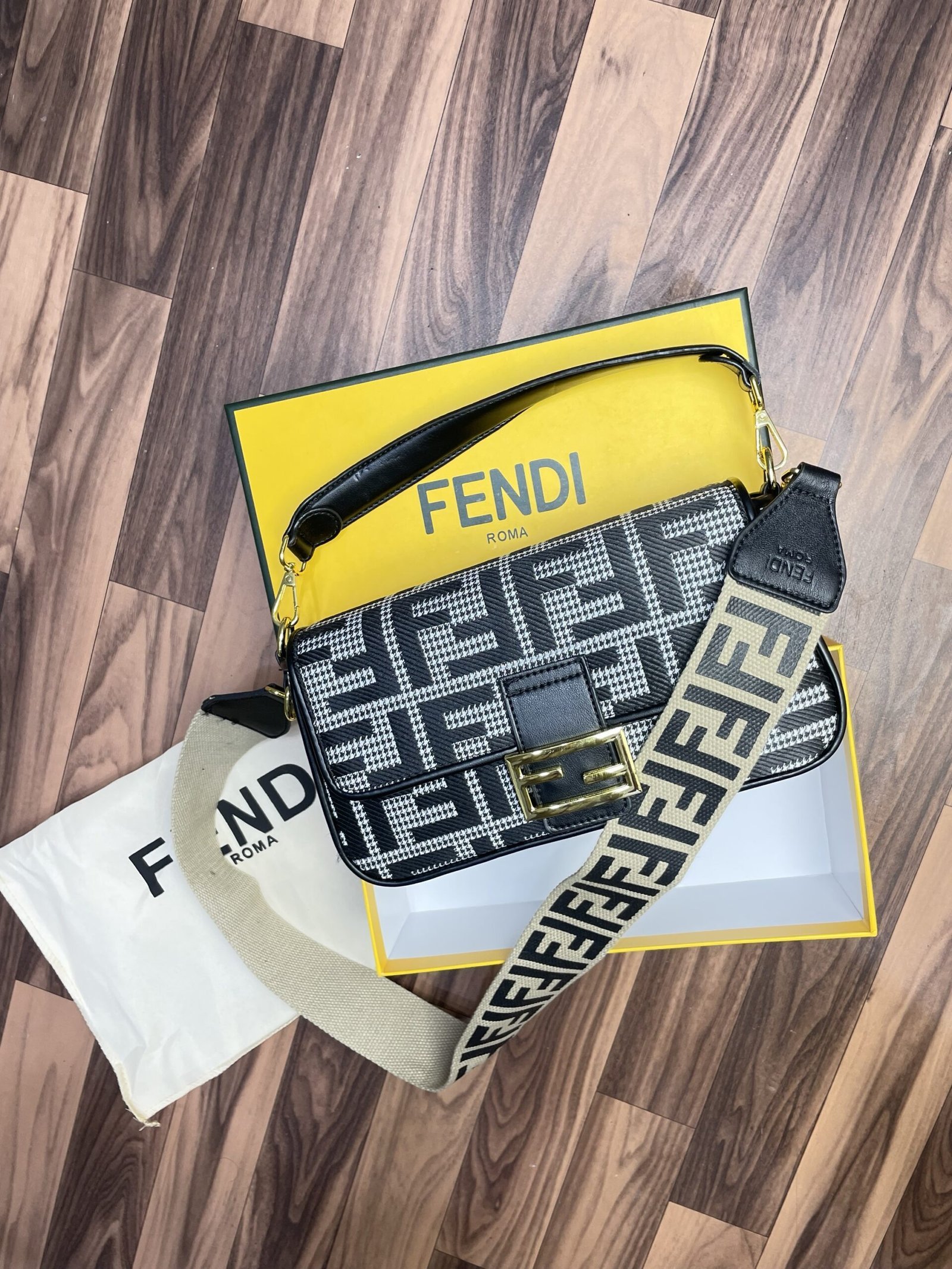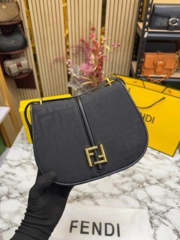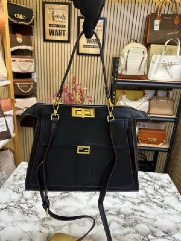 FEND I COMON FF LOGO PLAQUE HANDBAG WITH OG BOX AND DUST BAG INCLUDING CARRY BAG PREMIUM QUALITY (BLACK)(MT)