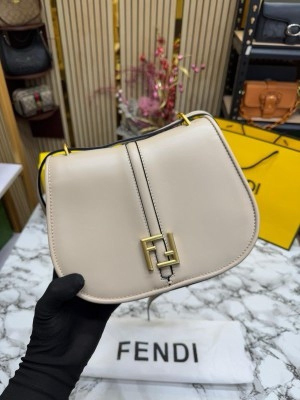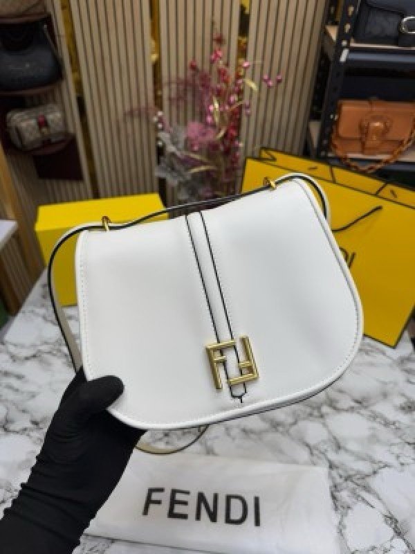FEND I COMON FF LOGO PLAQUE HANDBAG WITH OG BOX AND DUST BAG INCLUDING CARRY BAG PREMIUM QUALITY (WHITE)(MT)