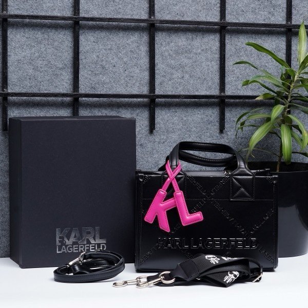 Karl Lagerfeld KSquare Embossed Small Tote Bag With OG Box & Dust Bag (KA52 Black Black)*🖤🍒