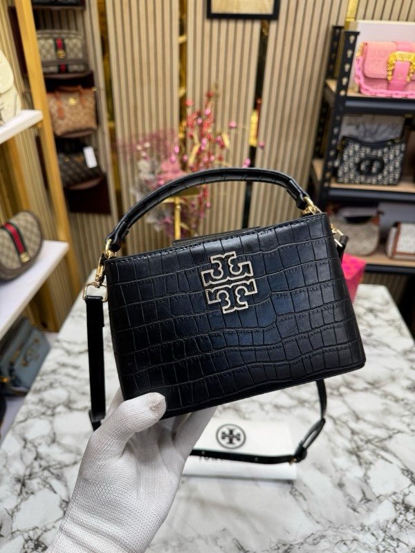 TOR Y BURCH BRITTEN HANDBAG CROCODILE PRINT WITH OG BOX AND DUST BAG AND SLING (BROWN) (S2)(MT)
