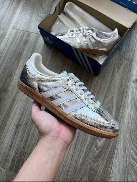 Adidass Samba OG Silver Metallic Cracked Leather