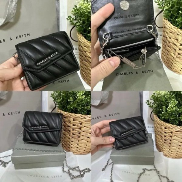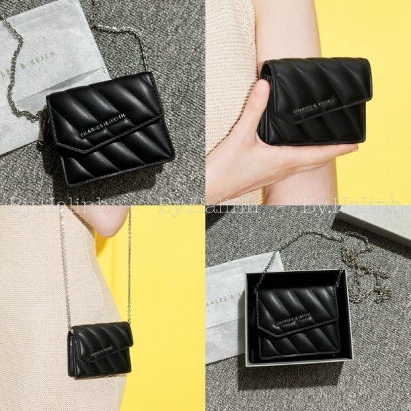 Charles & Keith Mini Asymmetric Flap Sling Bag With OG Box & Dust Bag (Black – 786)(BSB)