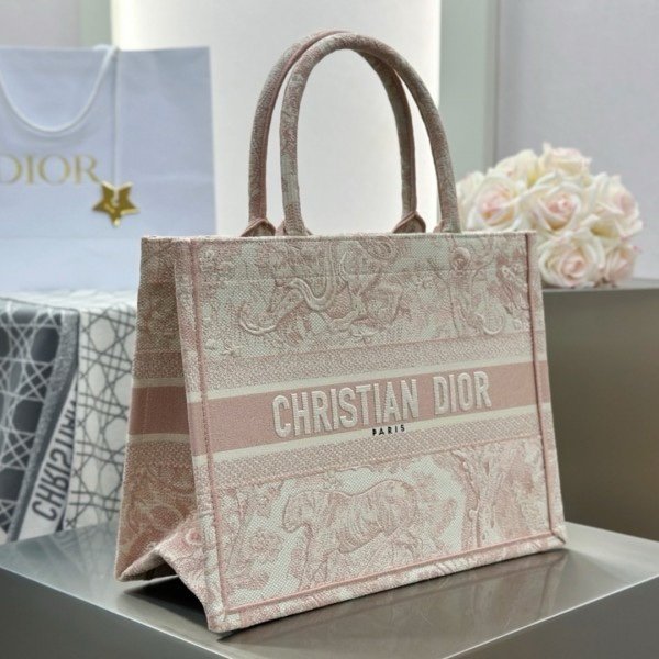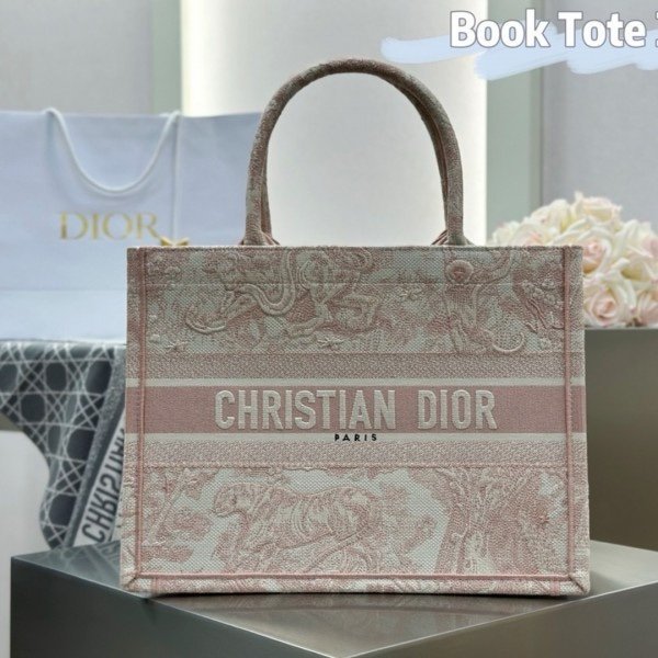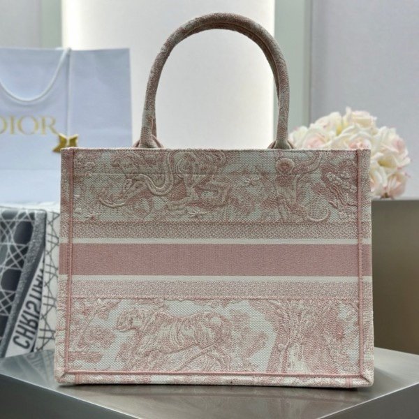 Dior Book Tote Pink Toile De Jouy With OG Box & Dust Bag & Scarf (Pink_Tiger-574)(BSB)