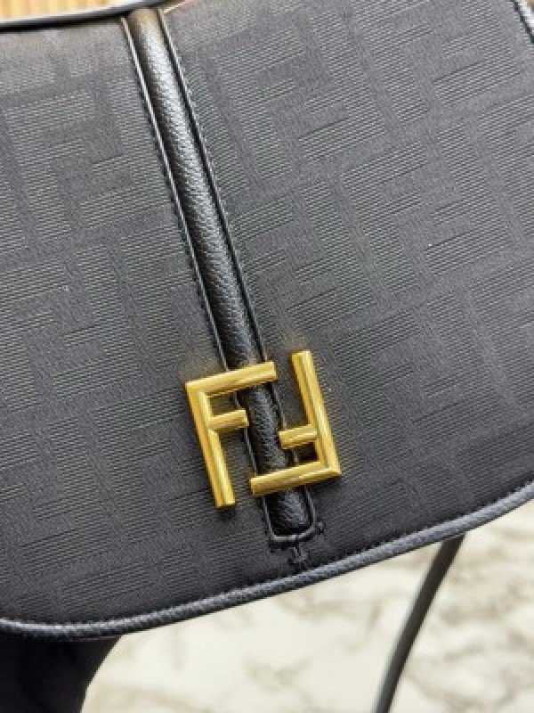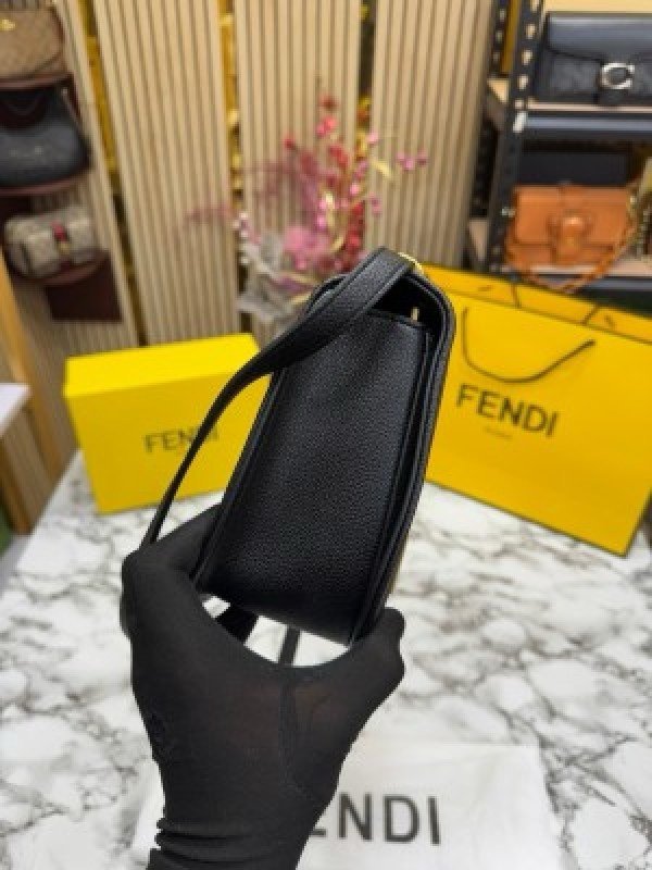 FEND I COMON FF LOGO PLAQUE HANDBAG WITH OG BOX AND DUST BAG INCLUDING CARRY BAG PREMIUM QUALITY (BLACK)(MT)