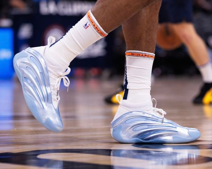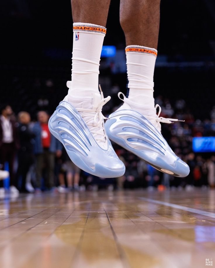 The adidas Harden Vol. 9 ‘Glow Blue’ brings a breathable mesh upper encaged within a molded synthetic overlay. A white knit cuff provides a snug, sock-like fit. Branding elements include Harden’s personal logo debossed on the back heel, along with cut-out detailing on the side panel that forms adidas’ signature three-stripes. The concealed midsole packs Light Boost cushioning with a Lightstrike foam carrier