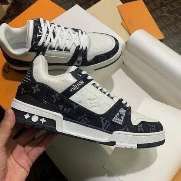 Louiis Vuittton LV Trainer Monogram White Black Denim With Accessories