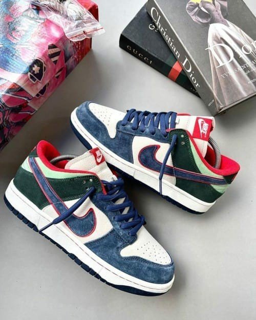 Nikee Dunk Low x Otomo Katsuhiro Navy Green Red Greenback Includes Suede Overlays fix
