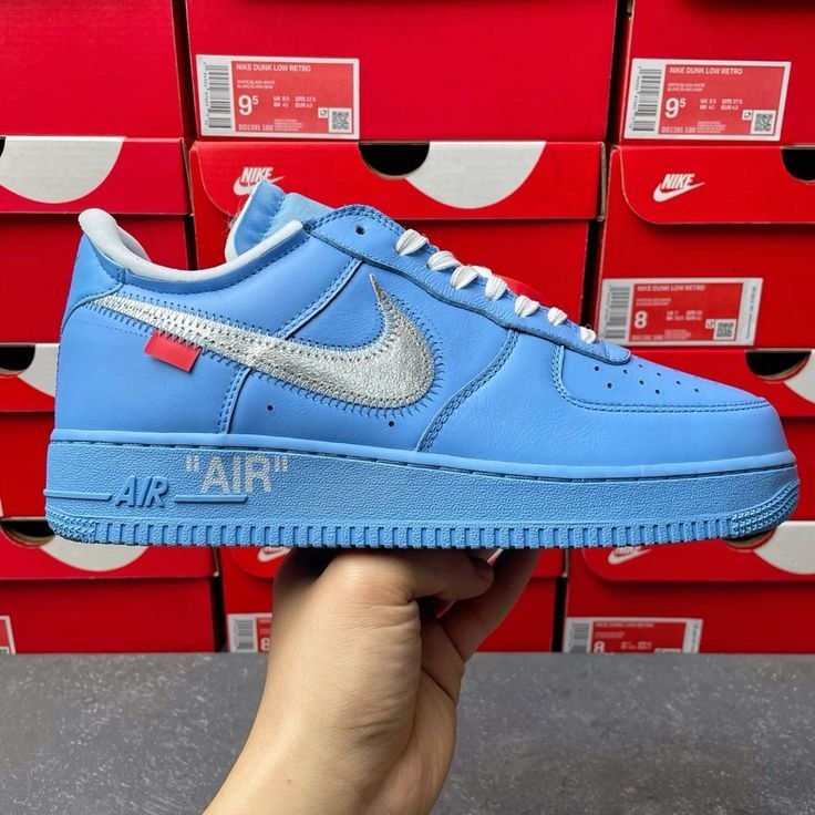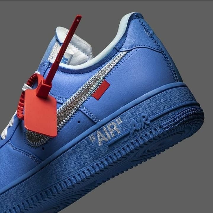 In celebration of his exhibit premiering at the Museum of Contemporary Art in Chicago in June 2019, Virgil Abloh teamed up with Nike once again to produce a Nike Air Force 1. The Off-White x Air Force 1 Low ’07 ‘MCA’ shoe features a University Blue leather upper and a Metallic Silver Swoosh with prominent stitching and a signature red tab. For a full circle-feel, the shoe reprises key design details from previous Off-White offerings, including the iconic zip tie and quoted branding