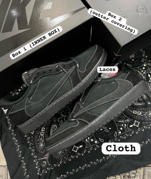 Travis Scott x Air Jordan 1 Low OG Black Phantom With Same Full Kit S Show In Image same Packing Semi UA