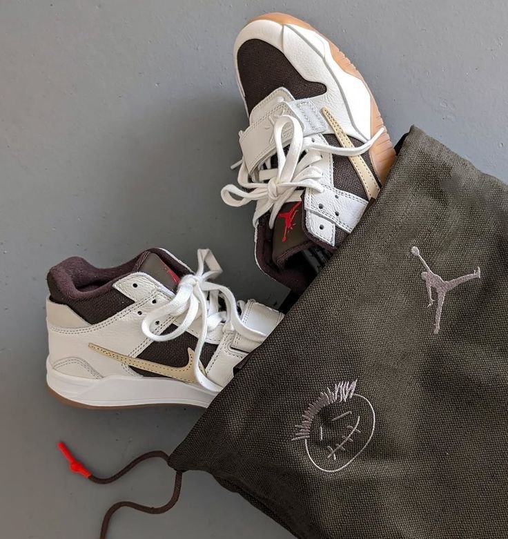 The Air Jordan Cut The Check TR Travis Scott Sail was born from a collaboration between the Jordan brand and renowned rap artist Travis Scott and features unique design elements and personal touches that reflect his distinct style and creative vision.